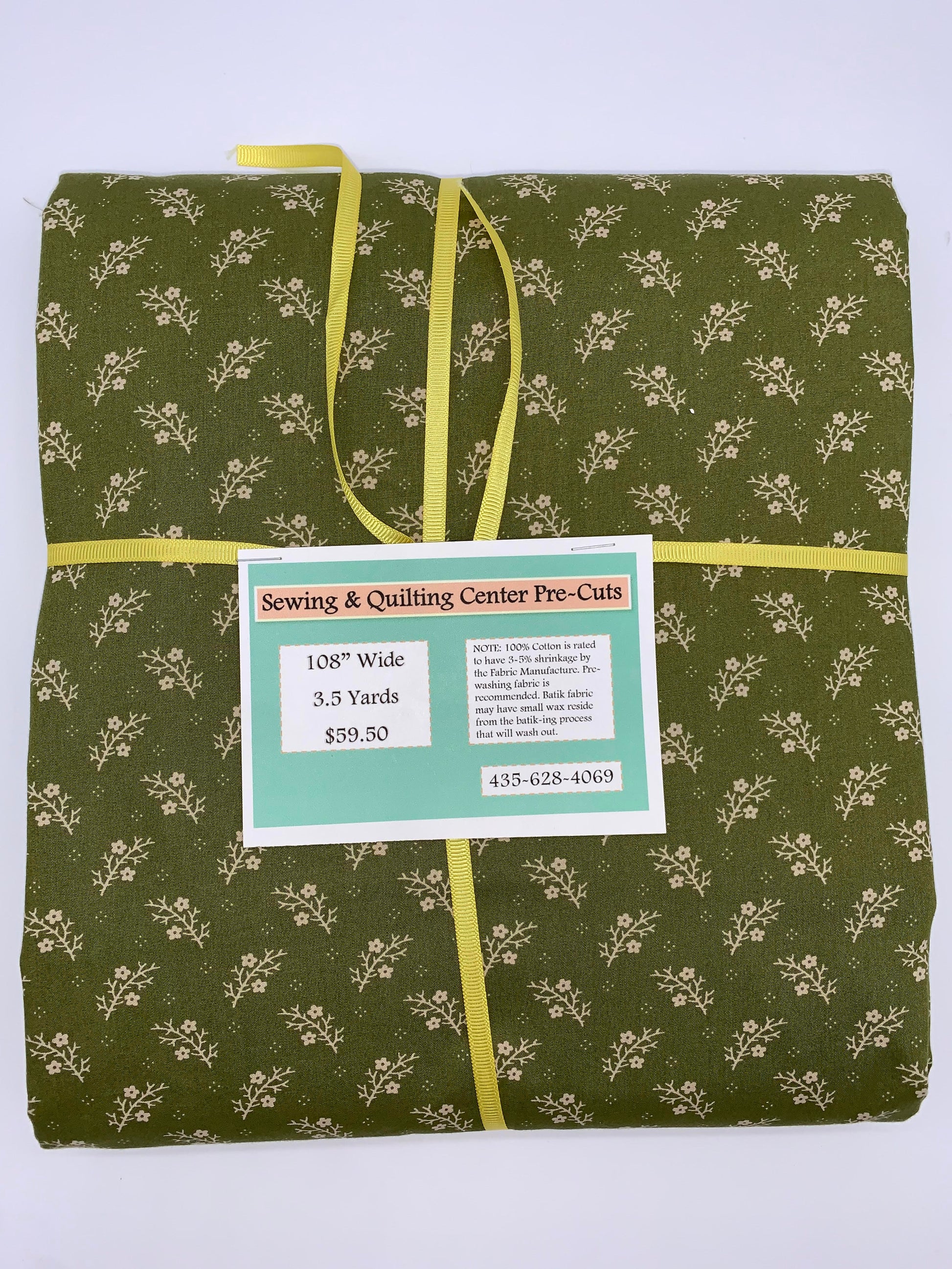This fabric is 108" wide and is pre-cut into a 3.5 yard piece. 108" wide fabric is a great backing choice for quilts!