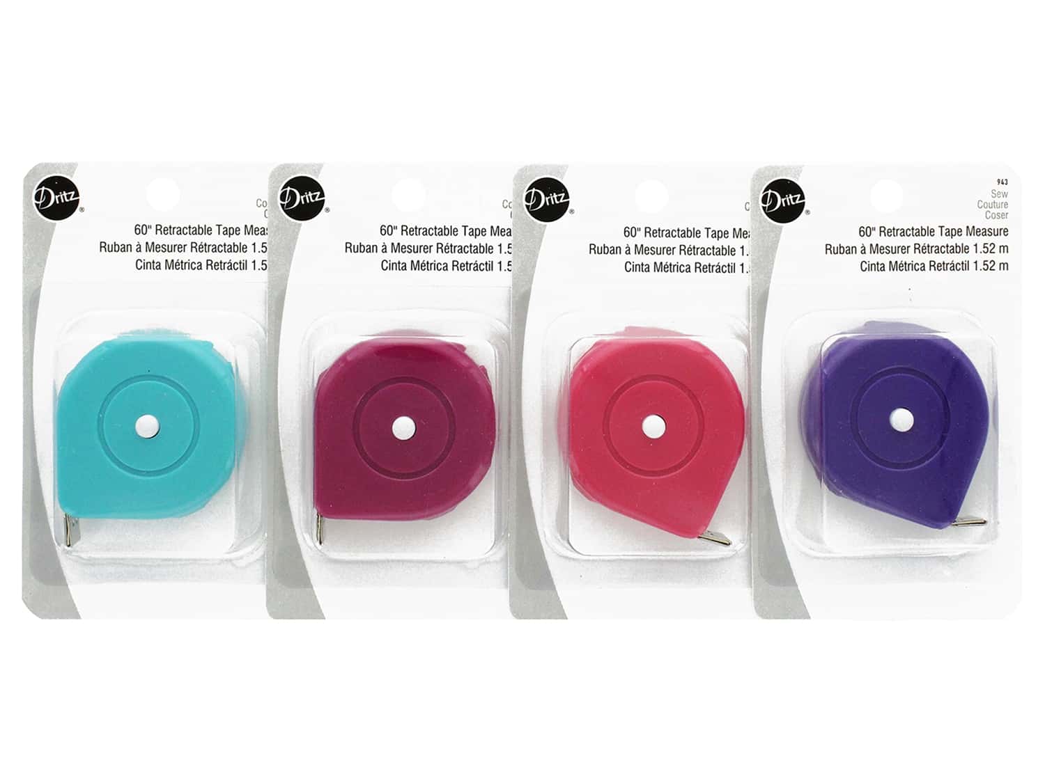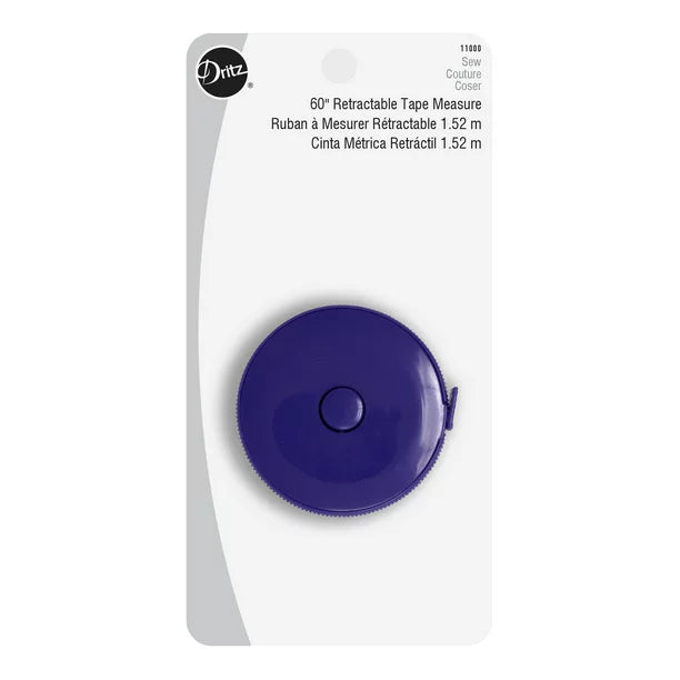 Plastic case with retractable, non stretch fiberglass tape. Metric on reverse side. 60 inch. Color chosen at random.