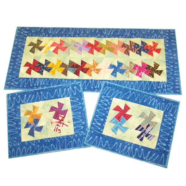 This pattern features a sophisticated twister design using 5-inch charm squares, perfect for creating an 18½" x 42½" table runner and coordinating 15½" x 18½" placemats. Utilizing the LILTWISTER template—or the Creative Grids CGRFFQ1 for cutting—the set offers a deceptively complex look with straightforward piecing. Designed by Amy Reitzel, it’s ideal for quilters seeking a refined project that combines precision and visual impact.