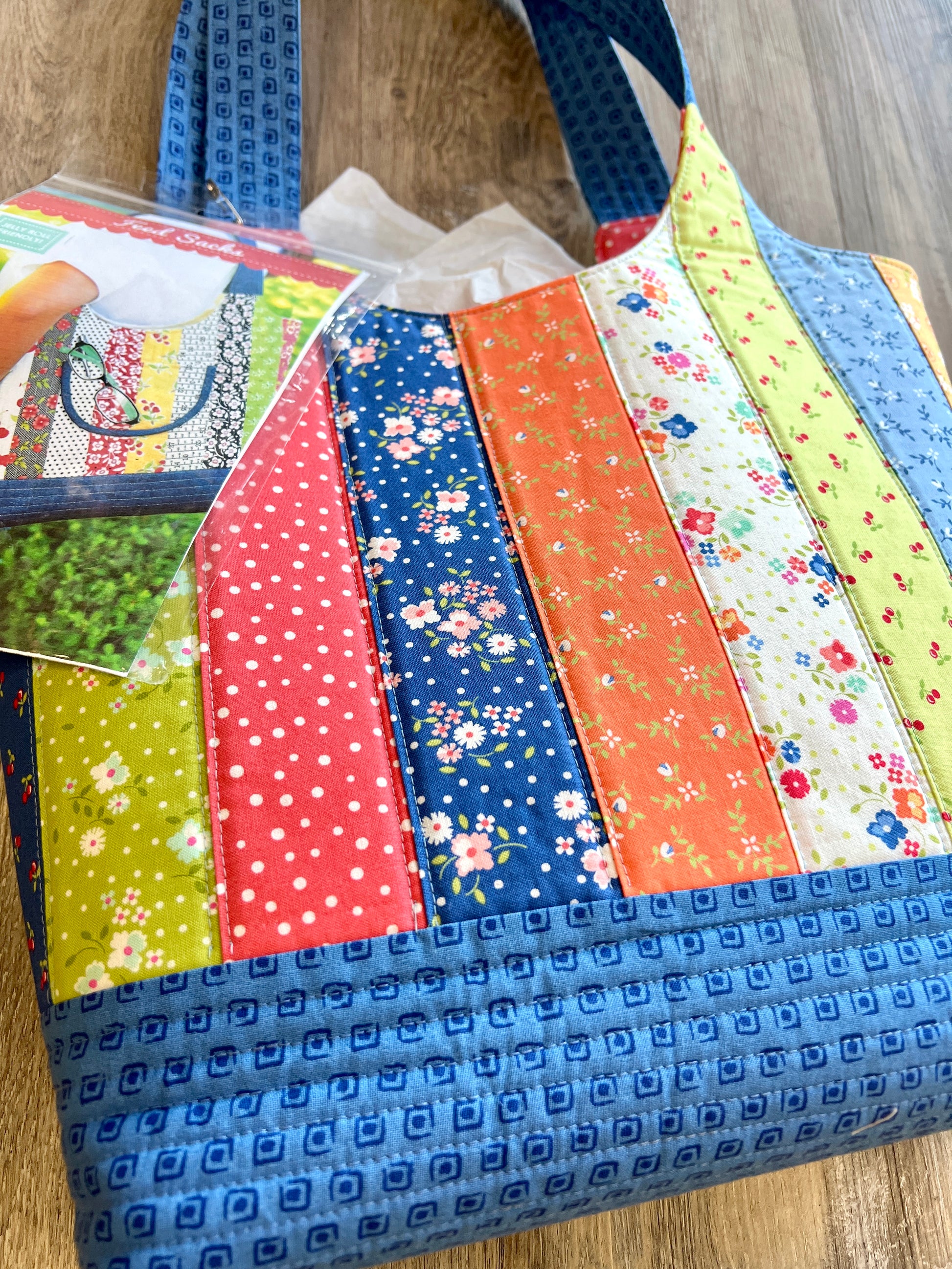These bags are just a bit addictive and in three sizes, they are pretty much perfect for any need from shopping to a daily purse, to a small beach bag to a notions or sewing bag. A perfect jelly roll project, these bags come together quickly and give you a perfect opportunity to use up your favorite strips! Hope you will join us and whip up some bags of your own!