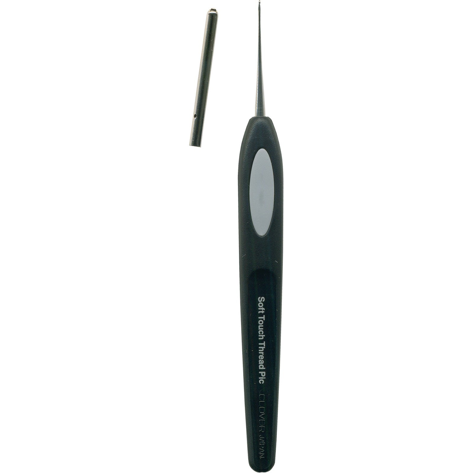 The perfect tool for hiding or removing stray threads. Slips easily between fabric layers. Leaves no marks or punctures. Soft touch comfortable grip. Includes thread pic cover.