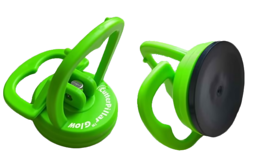 CutterPillar Mini Quilting Clamps. This handy little, green devil uses surprisingly strong suction to grasp and hold firmly on to unwieldy quilting rulers. Simple mechanics grip onto any flat (un-textured) surface. Perfect for holding, cutting and moving your quilting ruler. To remove, just release the handle and it comes right off leaving no marks. Once you try this clever device, you'll never want to use your ruler without it.