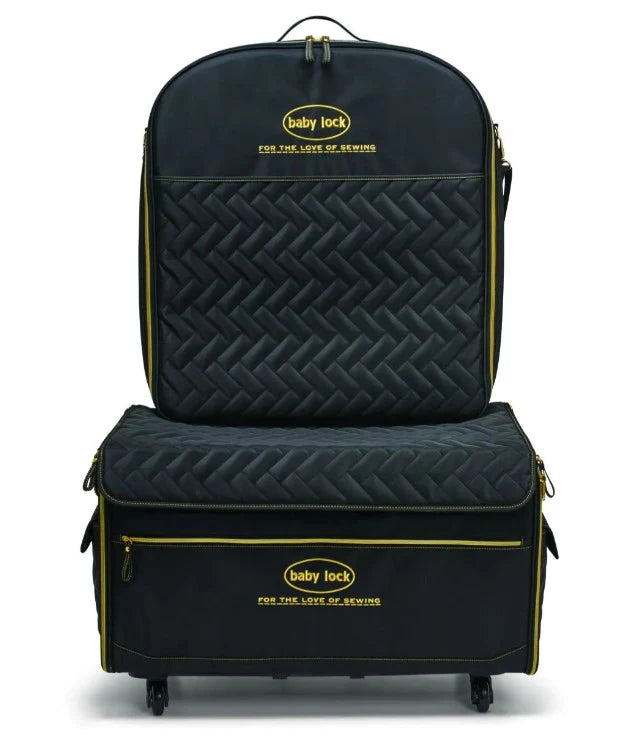 Large Quilted Trolley Bundle. Includes 1-Large quilted trolley and 1-Large quilted embroidery arm case with gold zippers and Baby Lock logo.