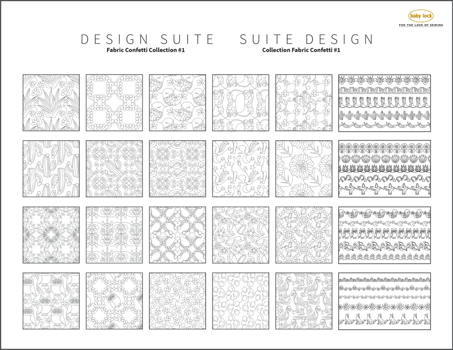 We are excited to offer a wonderful collection of custom Decorative Fills and Motifs! This Collection includes a total of twenty (20) unique Decorative Fills and twenty (20) companion Motifs that can be used to embellish and add extra personality to your embroidery creations. These are Decorative Fill and Motif files that have been created for use in Baby Lock IQ Designer and Palette 11 Digitizing Software*. Please note, not all versions of IQ Designer are compatible. If you are unsure if your machine’s version of IQ Designer is compatible, please talk to your local retailer, or contact the Baby Lock Support Line at 1-800-313-4110.