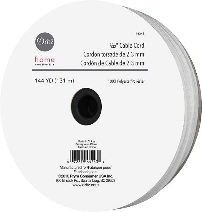The Dritz Home Cable Cord is an essential item to have in your home sewing tool kit. Made of 100% polyester, it can be used for indoor and outdoor décor, sportswear and crafts. Cord is machine washable and dry cleanable.