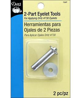 The Dritz 2-part eyelet tools are hand tools for applying ¼” 2-part eyelets. Package includes 1 anvil and 1 setter