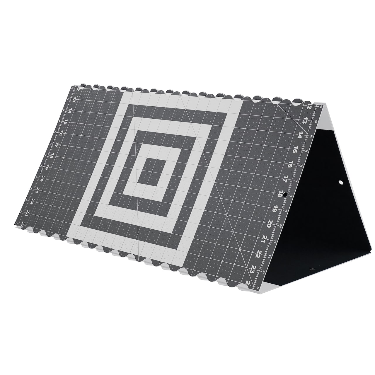 The Fiskars® Folding Cutting Mat, measuring 24" x 36", offers an extra-large, self-healing surface designed for precision fabric cutting. Its easy-to-read grid and bias lines at 30°, 45°, and 60° simplify creating triangles, squares, and stars. Double-sided use maximizes functionality, while the foldable design ensures convenient storage and portability. Durable and easy to maintain, this mat is an essential tool for expert quilters and sewists seeking accuracy and efficiency.