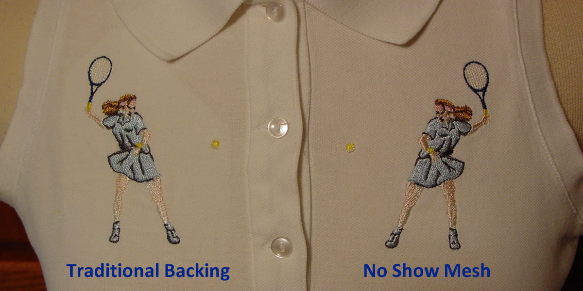 Important! If the design is denser than 6,000 stitches or if it is a poorly digitized design (too many stitches for designs size),”float” one layer of Floriani Medium Tearaway between the hoop and the bed of the machine for each additional 8,000 stitches for added support! After the design is complete the tear away can be removed leaving just the soft mesh against the skin.