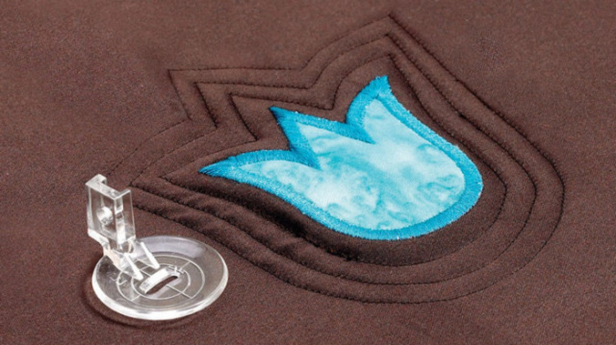 Give quilting patterns, applique designs and other items a gorgeous frame of echo patterns with this great foot. The built-in clear disk with measured guides helps to create perfect free-motion "rippling" effects with even spacing and accurate stitching.