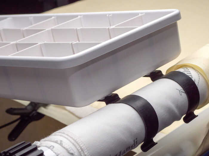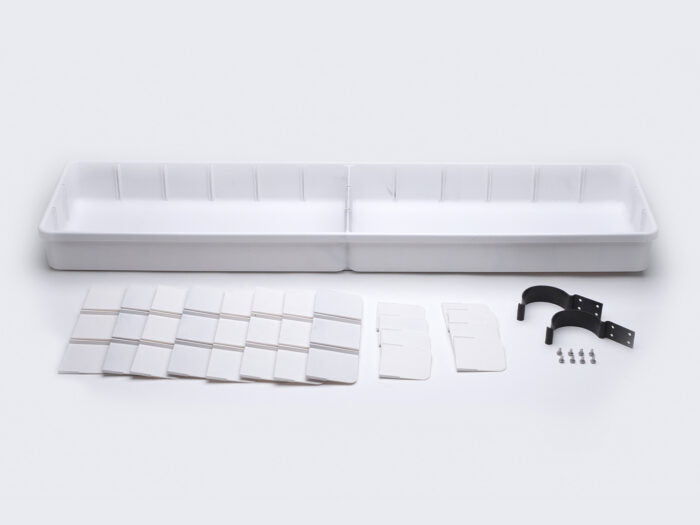 The NEW! Tool Tray2 comes with 16 dividers so that you can divide space and organize just the way you want. Better yet, the Tool Tray2 will fit any size frame, regardless of make or model! Measures 8.75″ x 32.25″ x 3.25″. Some assembly required.