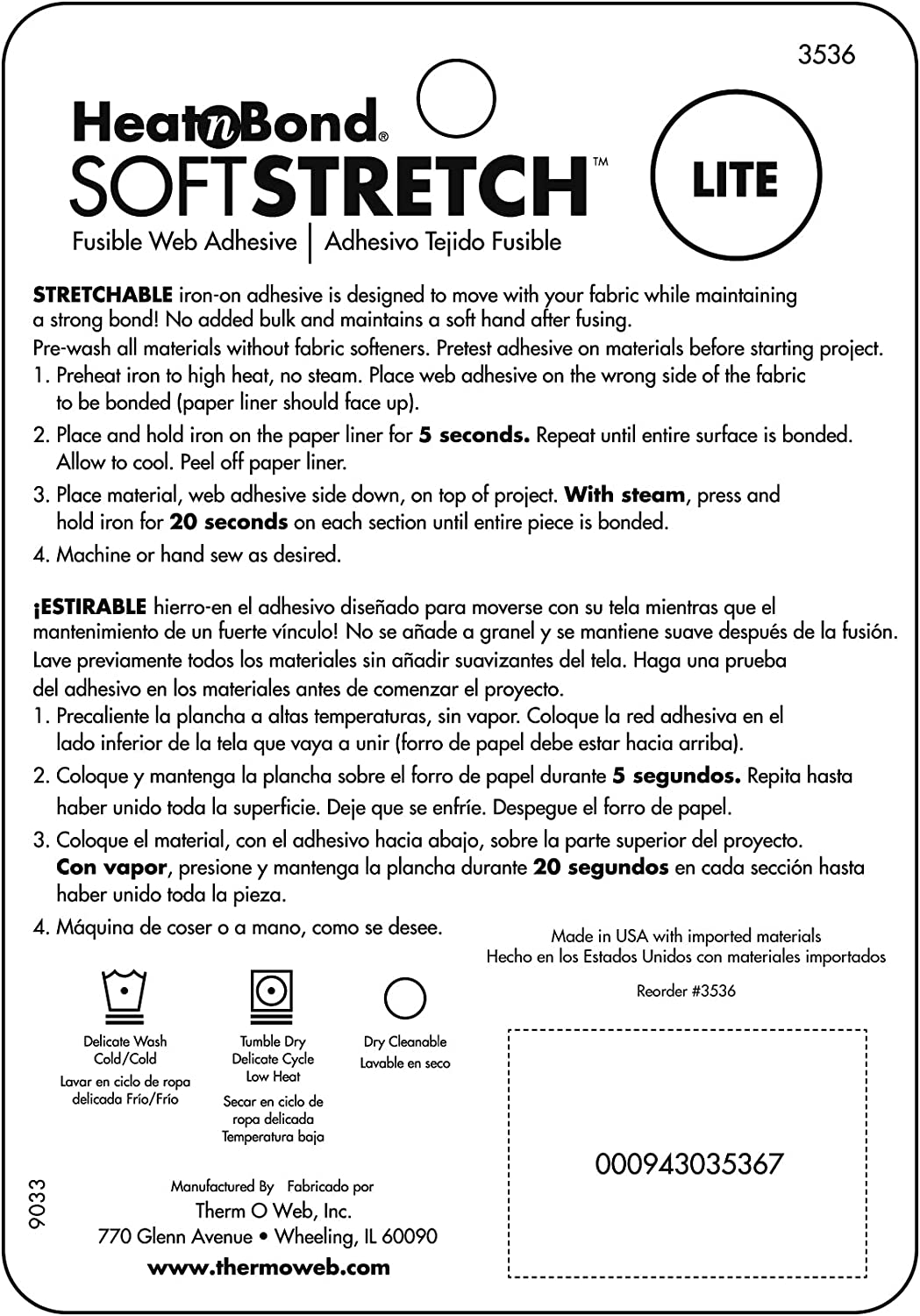 HeatnBond Soft Stretch Ultra is a no sew, lightweight iron-on web adhesive specially designed to move with your stretch fabric while maintaining a strong bond! There is no added bulk and maintains a soft hand after fusing. Great to use with knits, stretch denim, spandex, jersey fabrics, fleece and flannel
