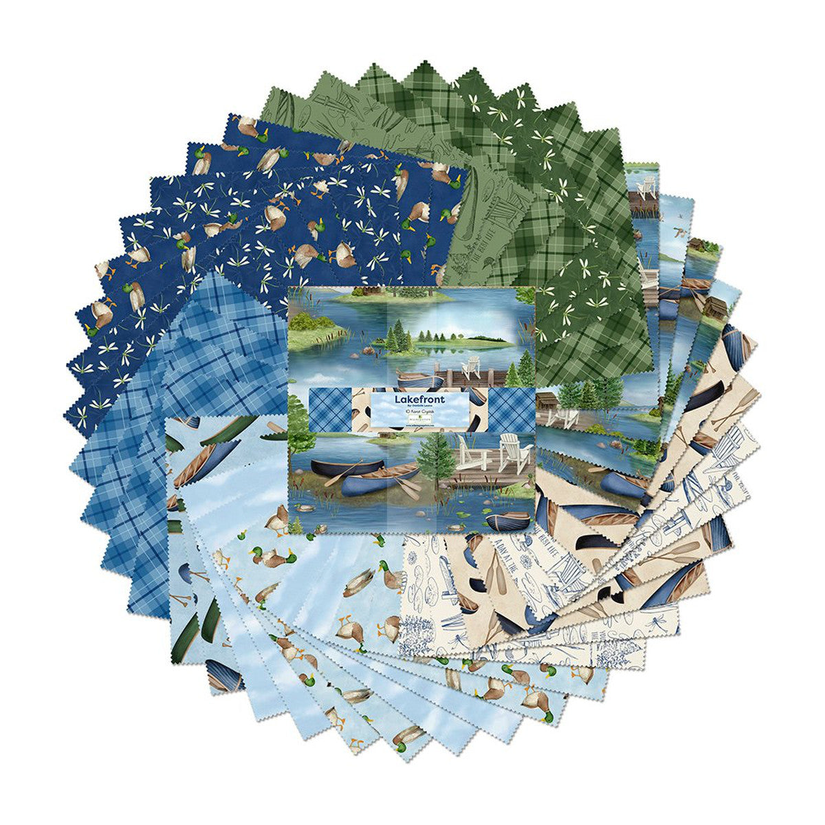 Wilmington Prints Fabrics Lakefront Danielle Leone 10 Inch Squares 10 Karat Crystals. Lakefront by Danielle Leone for Wilmington Prints features lake house vacation quilting fabrics by the yard, quilt panels, charm squares, layer cakes, fabric strips, free quilt patterns, and quilt kits
