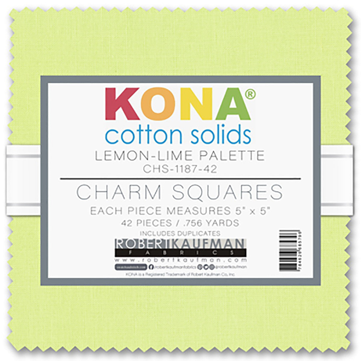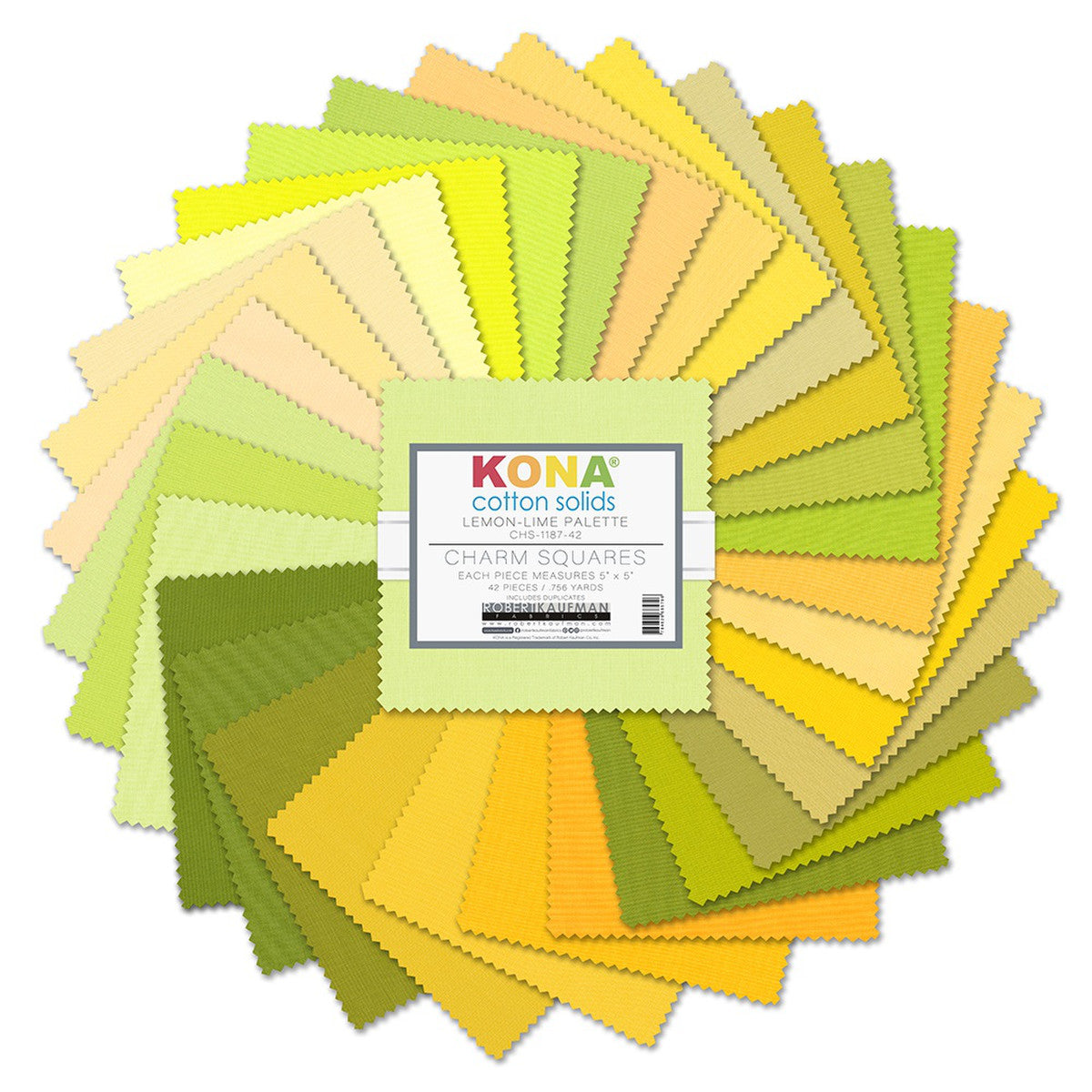 Lemon-Lime Palette - Kona Cotton Solids 5"x5" Charm Squares