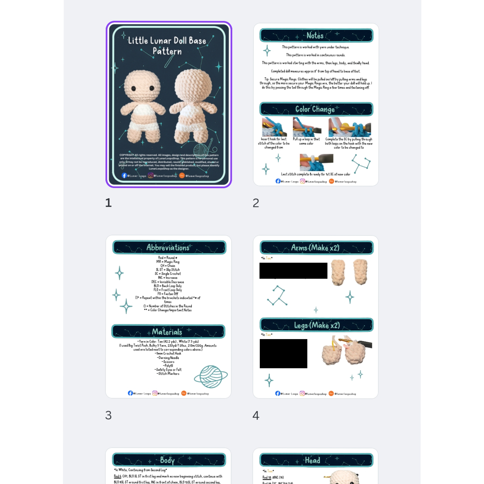 Create the foundation for endless cosmic-inspired looks with the Little Lunar Doll Base Crochet Pattern. This versatile amigurumi base was designed as a clean, customizable starting point to pair seamlessly with your growing collection of Little Lunar wardrobe patterns — with even more outfits to come.