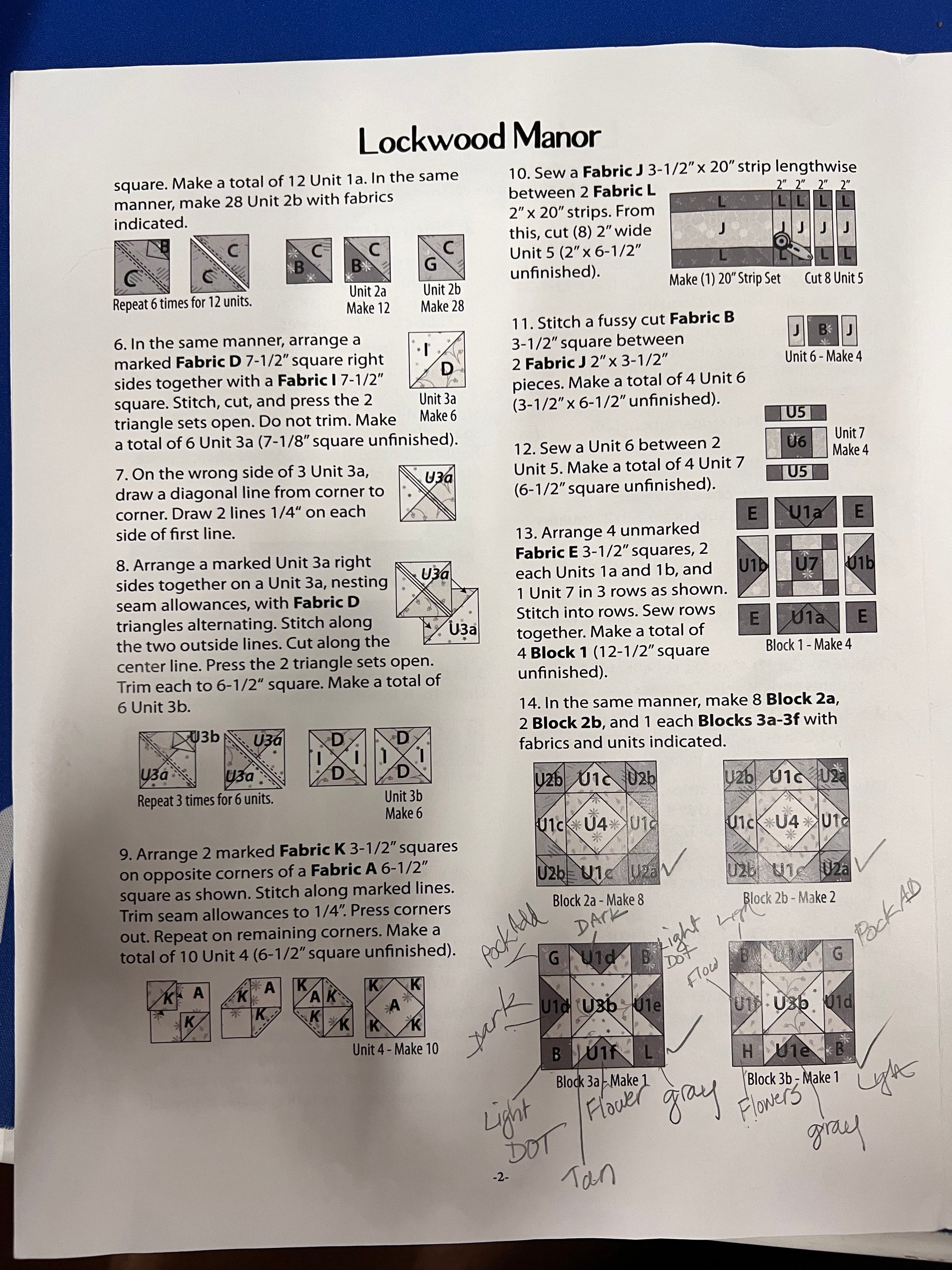 Here’s a twin quilt project for “Lockwood Manor” with easily-pieced square-in-a-square and star blocks – all slightly modified and with interesting color placement to create an “interlocking” effect.
