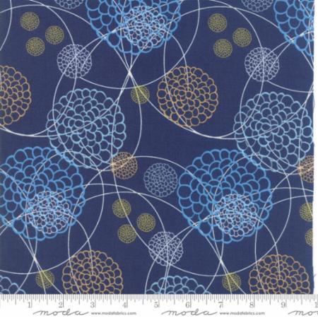 Colors found in this fabric: Navy, Blue, Aqua, White, Yellow, Tan