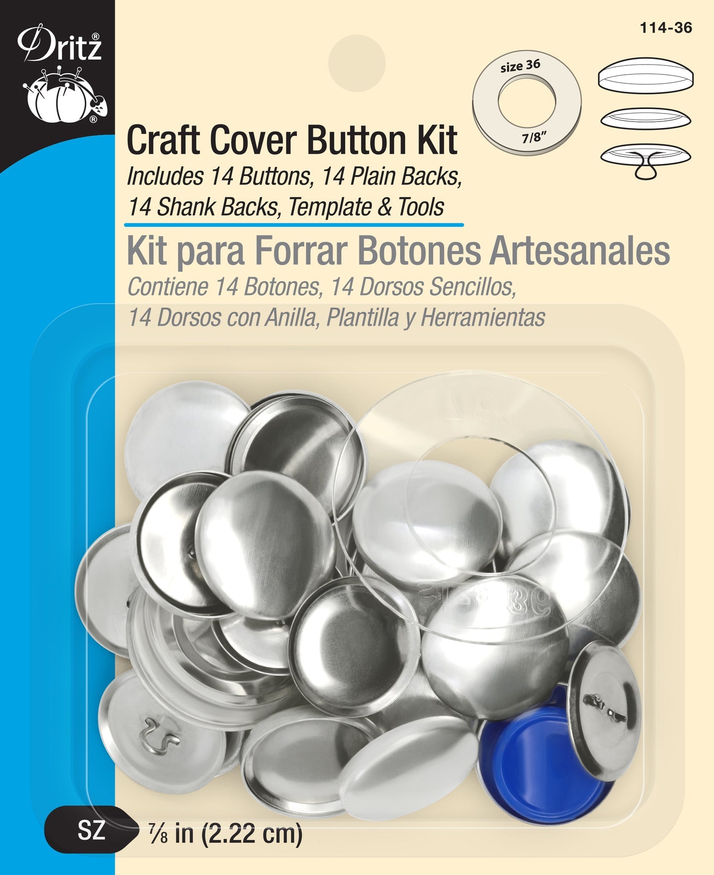 Use Dritz Craft Cover Buttons to get crafty! Embellish garments using backs with shanks or create jewelry and accessories using backs without shanks. The clear template allows you to center, trace and cut specific designs from your fabric. Washable and dry cleanable.