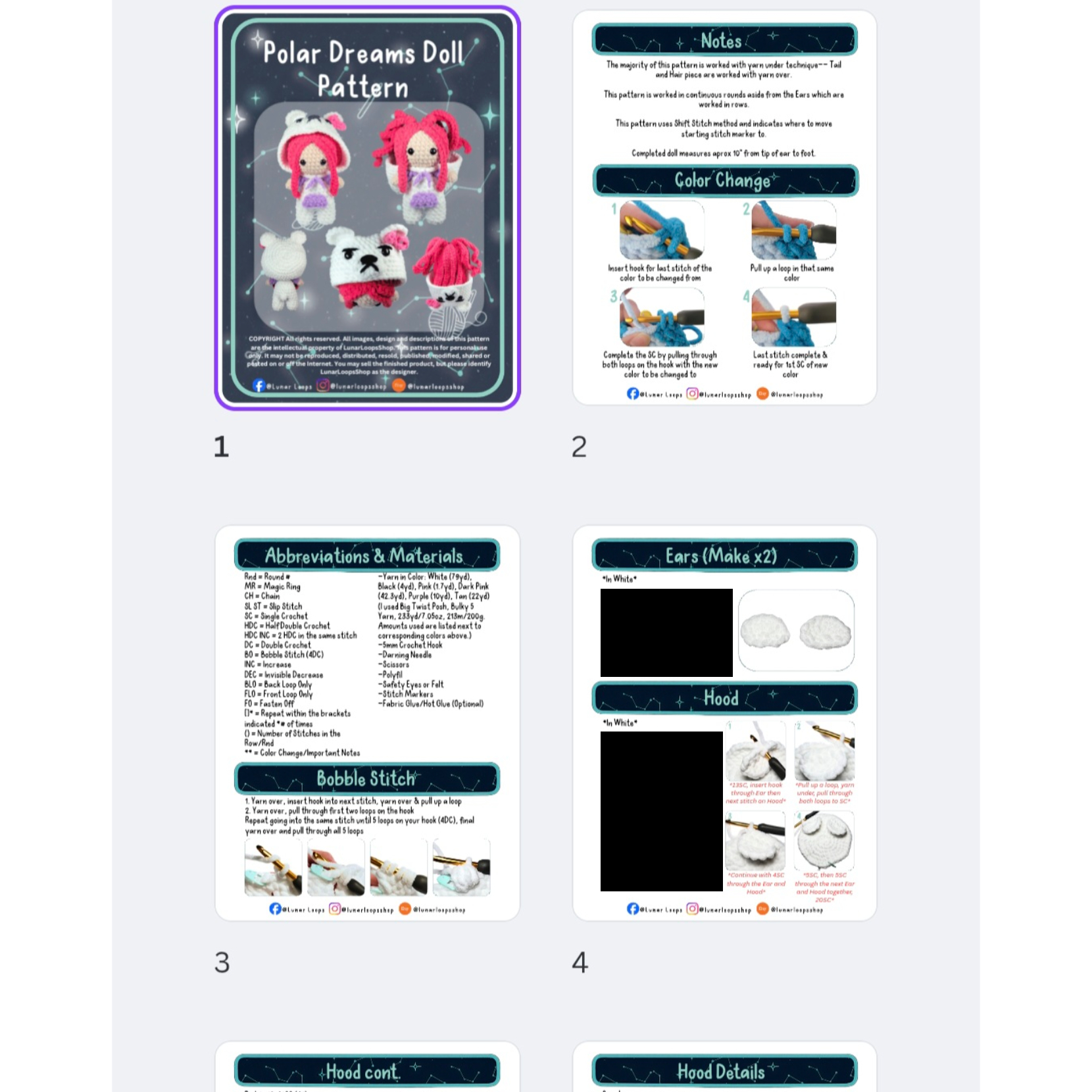 Bring a cozy, moonlit mischief-maker to life with the Polar Dreams Doll Pattern! This crochet pattern shows you how to create a whimsical girl tucked into a soft polar bear onesie, complete with rounded ears, paw details, and a sweet pink bow. While the doll herself features a simple, classic face, the personality truly shines through the adorably grumpy polar bear hood, giving this design its signature pouty charm. Perfect for collectors, gift-givers, or anyone who loves cozy, character-filled amigurumi with a little attitude.