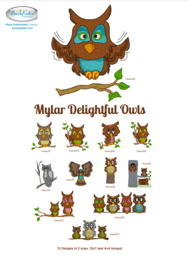 12 designs in 2 sizes (5x7 and 4x4 hoops)