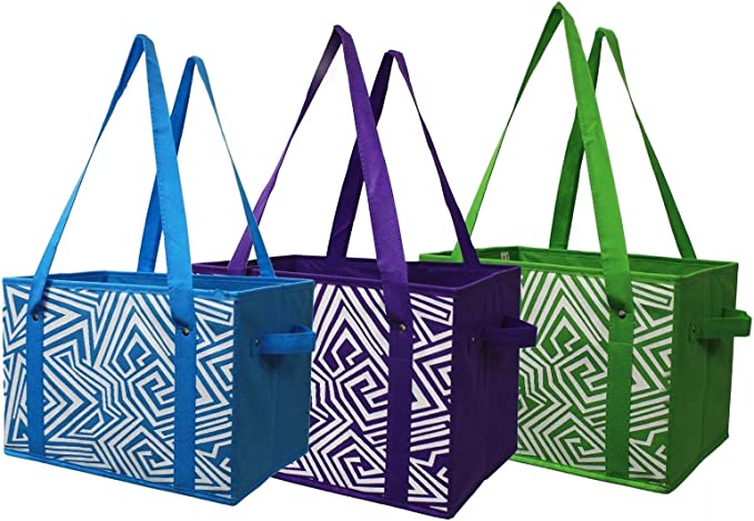 - CONVENIENT: Folds up flat for easy storage with foldable reinforced bottom for extra durability. Rigid bottom keeps the bags flat and sturdy in your trunk so nothing will slide around in your car. Stays open and upright for easy loading.