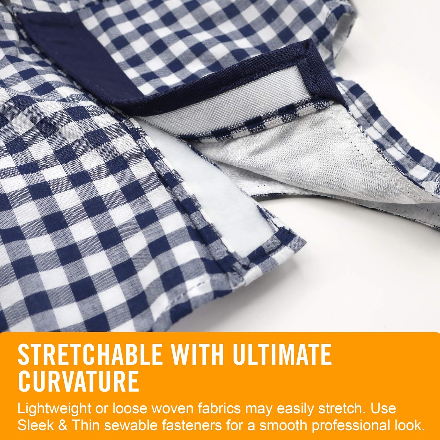 - STRETCHABLE WITH ULTIMATE CURVATURE: Lightweight or loose woven fabrics may easily stretch, use Sleek and Thin sewable fasteners for a smooth professional look