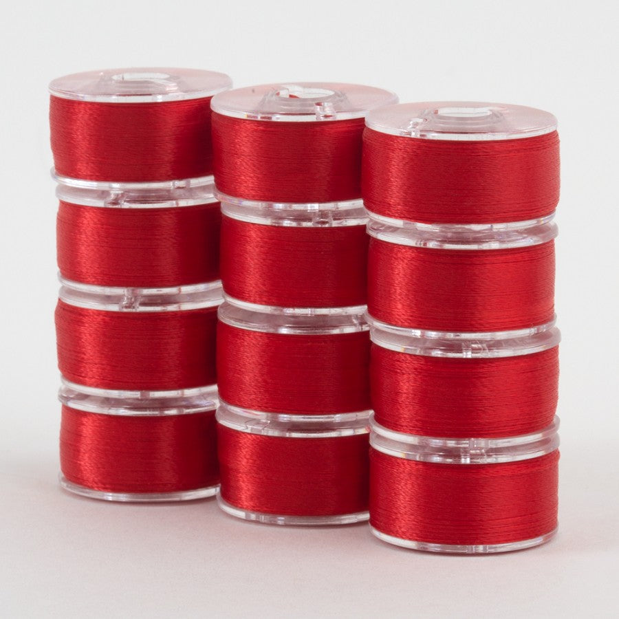 60 wt. 2-ply polyester thread. Designed for applique, bobbin thread, embroidery, and quilting. SuperBOBs Poly come in L-style, Class 15, and M-style pre-wound bobbins. Available in 24 colors. The lightweight, blending colors are easily matched with any top thread.
