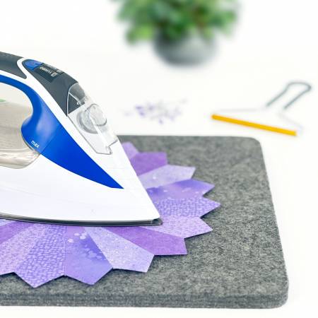Press any pieced or embroidered block with ease. The density of this high-quality 100% felted wool mat localizes heat to the seams and stitches, effectively pressing both sides at once. An added bonus? The texture of the wool stops fabrics from shifting so there is no distortion when pressing. Tips and Tricks For best results, use a dry iron when pressing. When pressing an embroidered block, iron on the wrong side. The wool mat will cushion the stitches and retain the texture of the embroidery design. If the mat feels damp after use, hang to air-dry before storing. Wash the mat occasionally by rinsing it in cold water and hang the mat until dry. If you choose to use starch, wait to press the fabric until it is completely dry. . Starch build-up can scorch the mat if not cleaned properly. Recommended surfaces for the wool mat include Formica, Corian, stone, and metal (an ironing board). Please use a protective barrier like the No-Stick Applique Sheet TGQ117 between wood or painted surfaces and the Wool Mat. Never place the mat on a rotary cutting mat when pressing. The heat could warp the cutting mat.